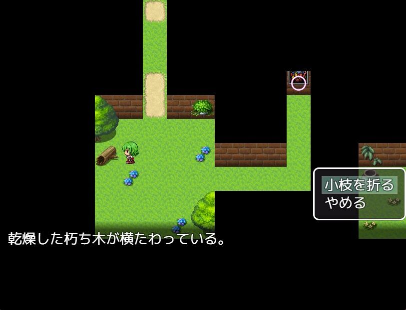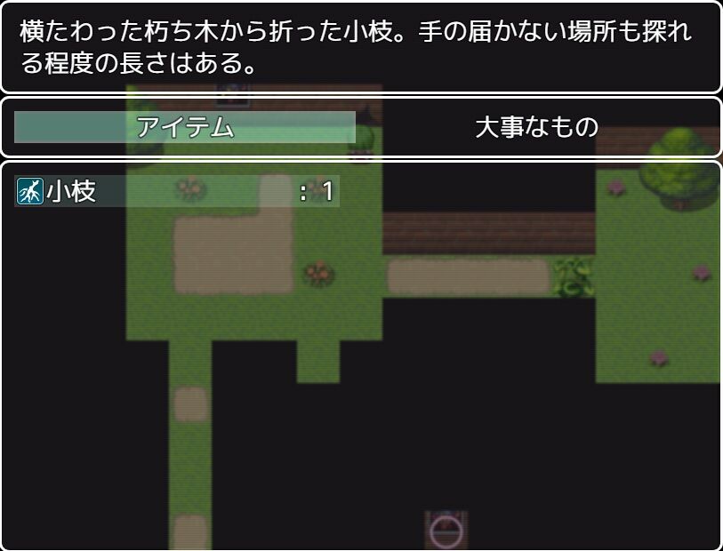 左下の倒木を調べ、「小枝」を入手