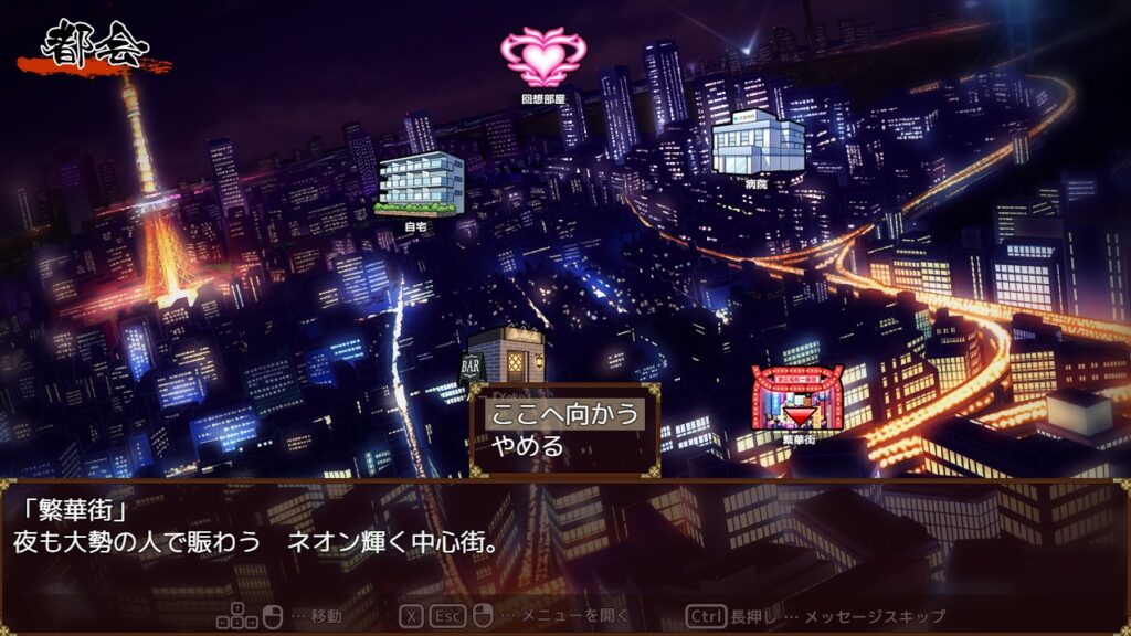 旅館を出て、画面左側の矢印に触れると都会に帰れる
