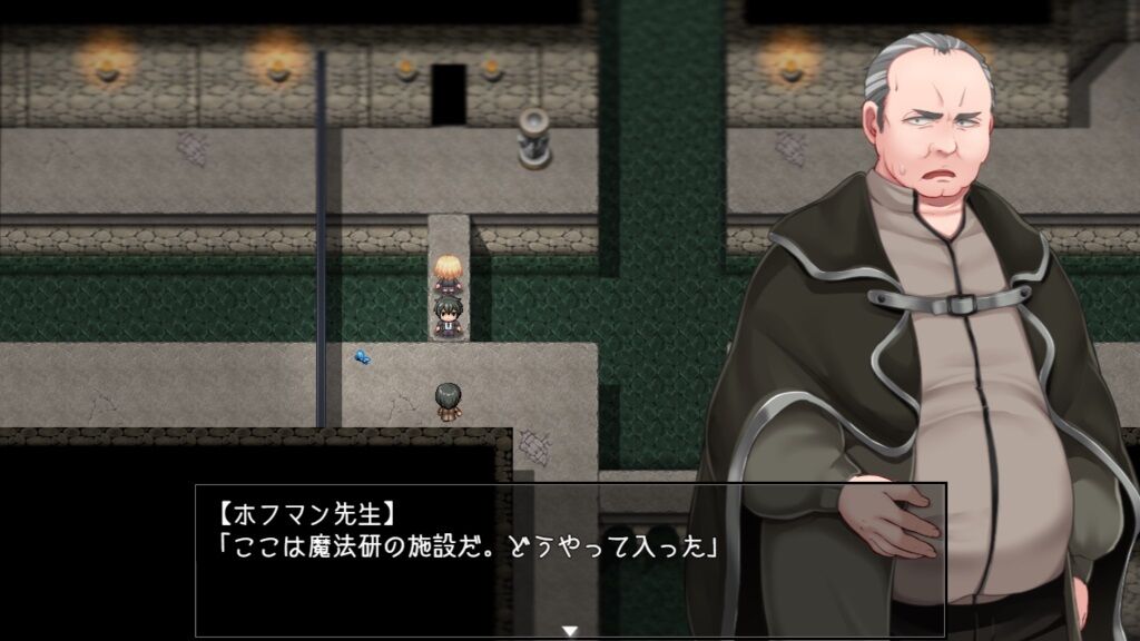 地下に侵入後、左下の黒い汚れを調べるとダンジョンに入れるようになります。