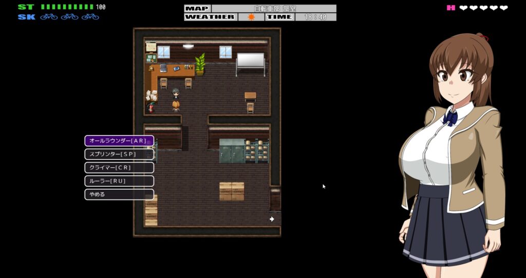 前作「Flash Cycring Ride~自転車露出主義~」では、パーツ改造はあるものの、地形に影響されることなく走るだけだったが、今作では主人公にタイプが実装されました。