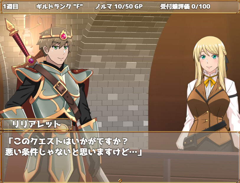 本作は、サークル【eChime】様の受付嬢が底辺ギルドを成り上がらせるために奮闘するRPG作品です。