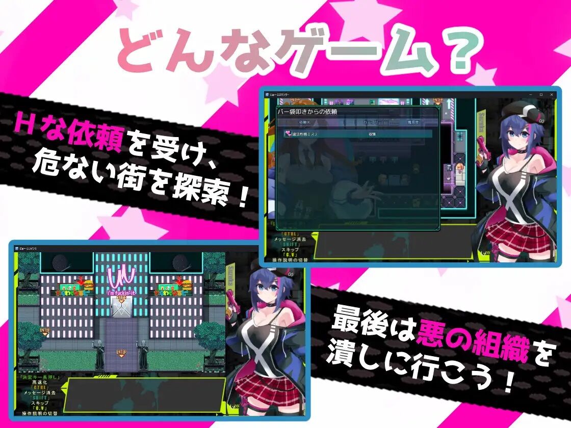 未来都市を舞台に、Hな依頼で情報を引き出し、事件の謎を追う。敗北や選択肢で発生する罠H、羞恥・恥辱・ハードレズなど性癖直撃のシーンも満載。スズカ以外のキャラにもHありで抜き応えバツグン。