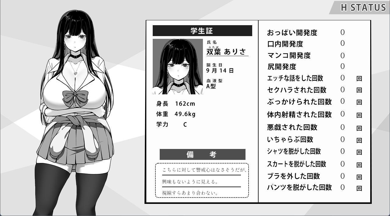 黒髪爆乳JKギャルと知り合いになり、仲良くなり、エッチな関係になるまでの日常系シミュレーション。