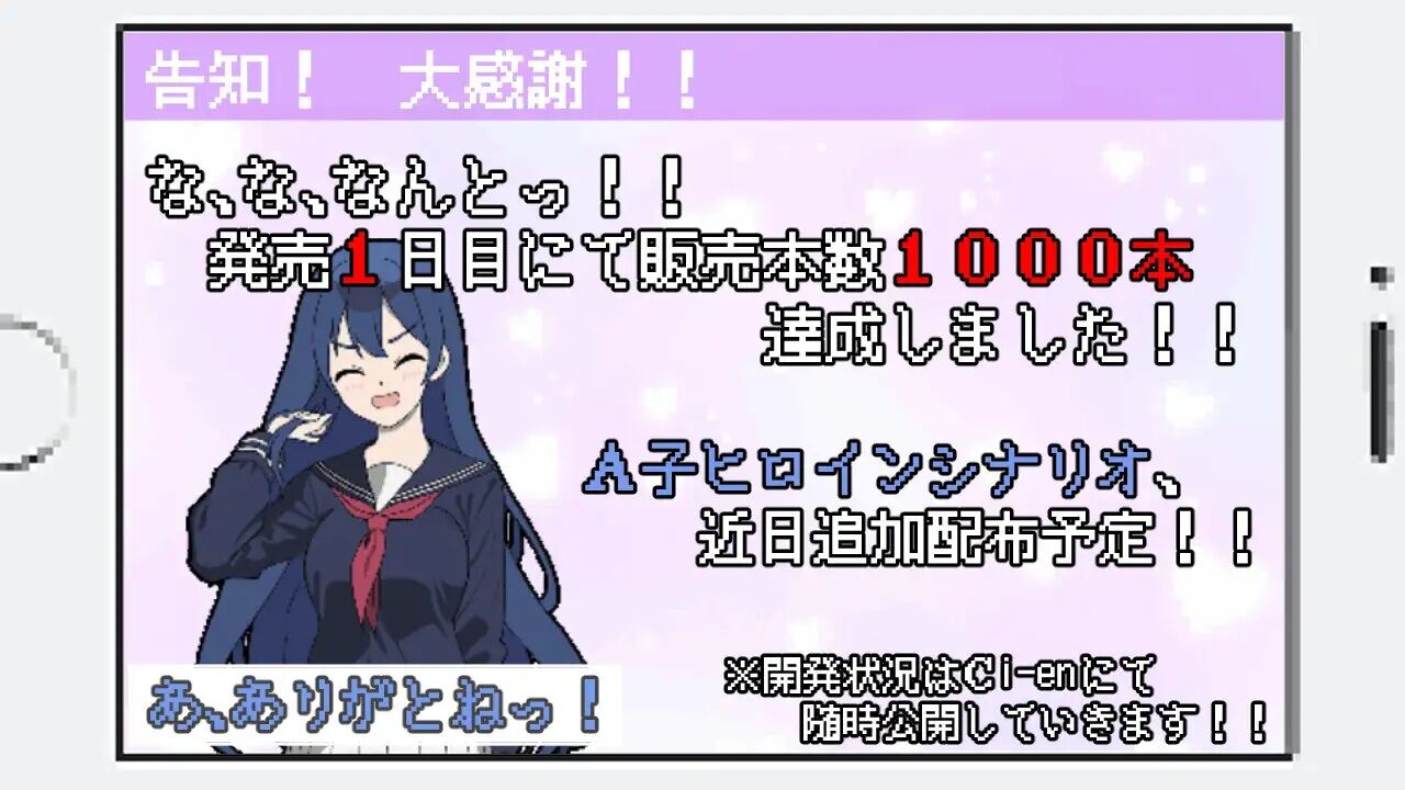 調教度5のヒロインの数でシナリオが進行するため、最後のほうに攻略するのがオススメ。